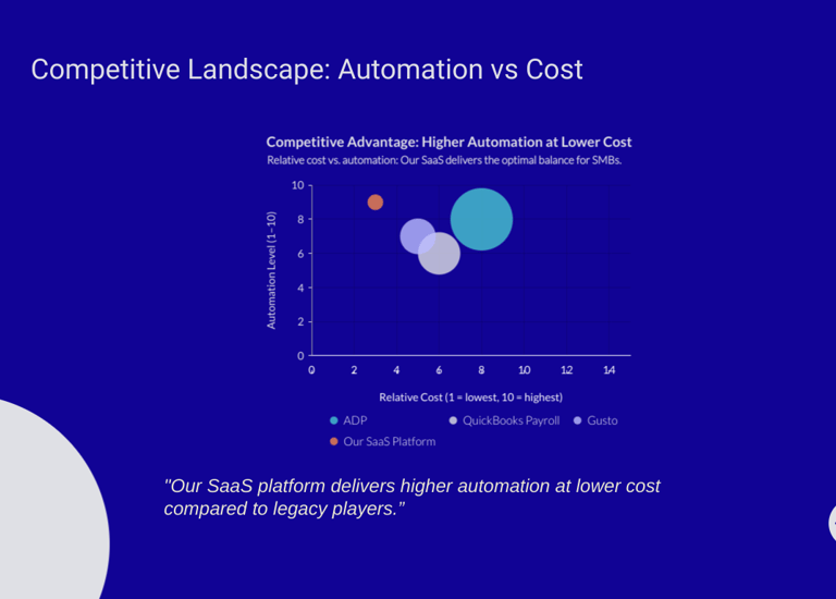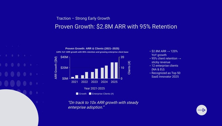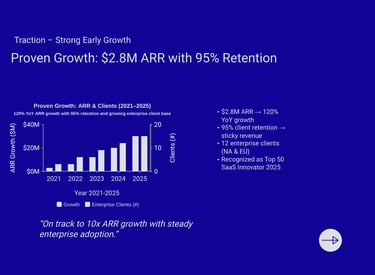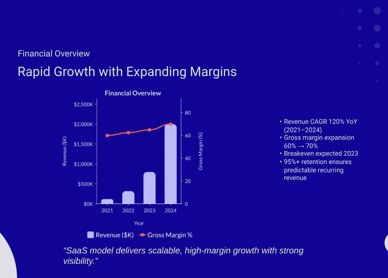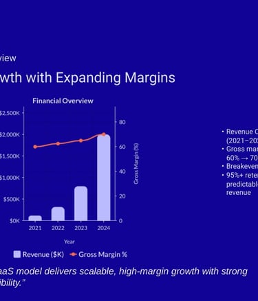 Designed an investor-ready deck that simplified complex financial data and helped the client secure funding conversations with VCs.